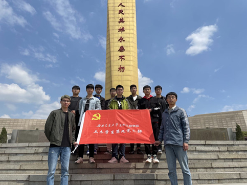 2021年4月3日上午8时,土木学生第九党支部付忻等11名党员乘坐公共交通前往成都市烈士陵园瞻仰烈士。