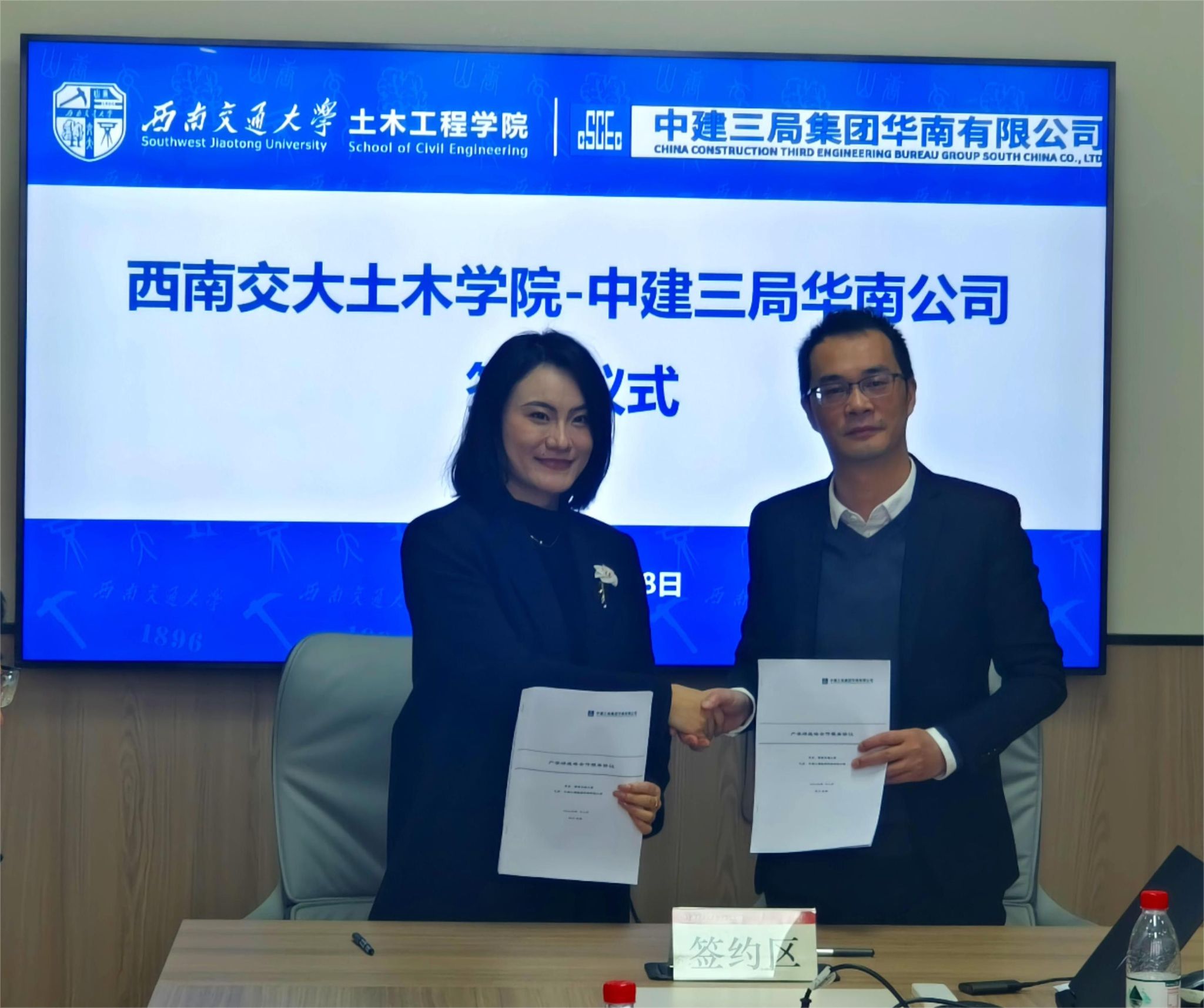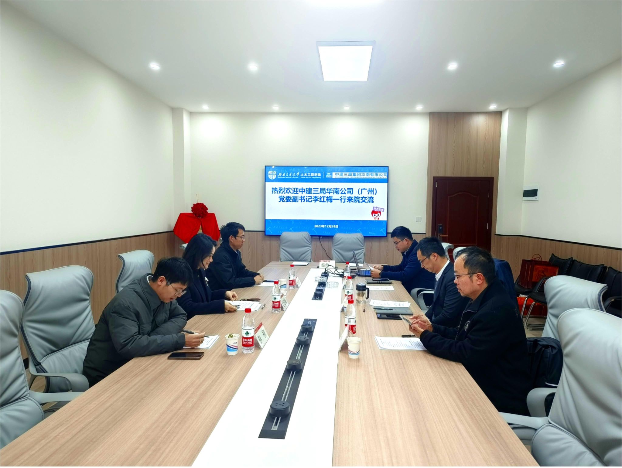 2023年12月28日上午9:30,中建三局华南公司(广州)党委副书记李红梅、人力资源部经理靳永桥、团总支书记彭初一行走访必赢626net入口必赢626net入口,于犀浦校区X4417B会议室开展校企合作座谈交流,并进行校企合作签约。必赢626net入口党委副书记周曦、培训中心朱明与本科生就业专项负责人李裕出席此次座谈。