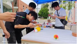 在本次活动中,同学们使用彩色颜料和画笔,在泡沫球上尽情挥洒创意,用色彩描绘内心的世界,用自己的无限创意诠释了心灵的色彩,让小球焕发出独特的光彩。志愿者们尽职尽责,精心布置活动现场,引导前来参与的同学将自己的内心所想以色彩的形式展现在一个个小球上,让一颗颗孤独的星球连结成一片交融的星海。
